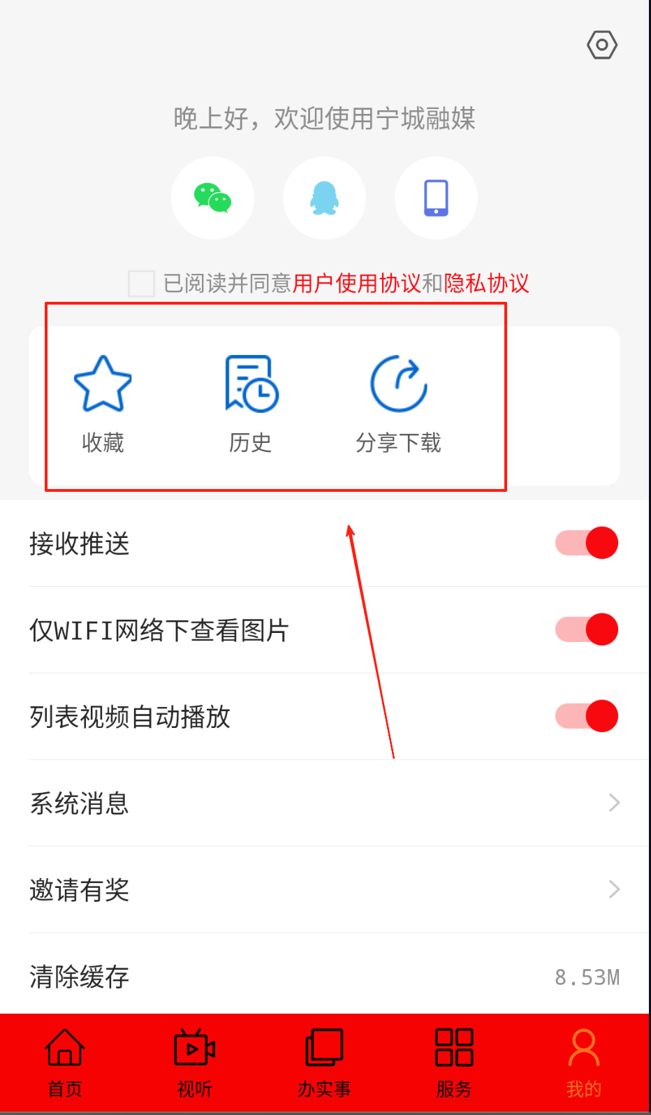 3、进入个人中心可查看已收藏内容与七天内的浏览记录,每日首次登录点击签到按钮即可累积积分,满30分可兑换本地商户优惠券。