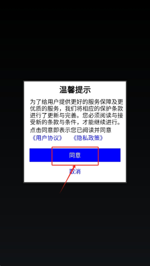 1、同意条款:在游戏启动时,阅读并点击“同意”按钮以接受用户协议和隐私政策,从而开始游戏。