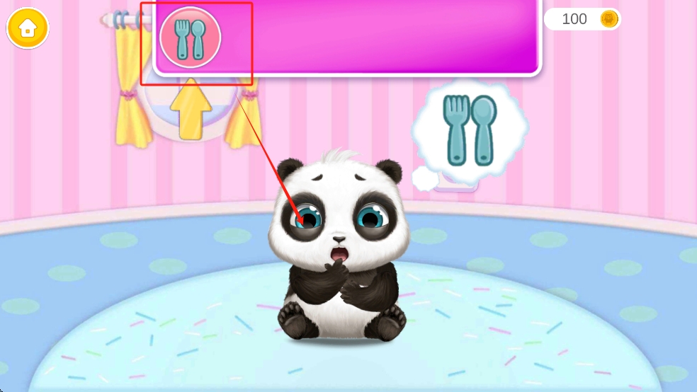 4、选择游戏道具:在游戏界面中,选择适合的道具,如点击叉子来喂养熊猫宝宝。