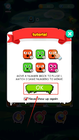 2、学习教程:阅读弹出的教程信息,了解如何移动数字方块和合并相同数字,然后点击“OK”继续。