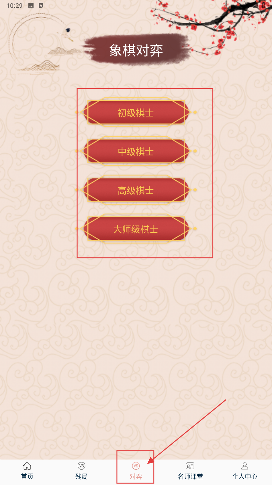 3、也可以点击【对弈】选择等级即可匹配对手。