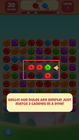 1、游戏基本规则为将相同的糖果进行【MATCH3】(三个及以上)连线消除。