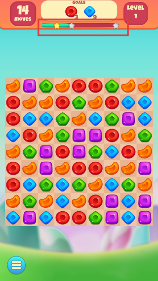 3、留意剩余步数【moves】和进度条,合理规划消除步骤,争取在步数用完前达成目标并获取星级评价。