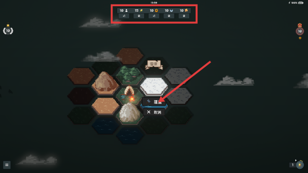 1、关注屏幕上方资源栏,明确各类资源数量,如人口、木材等,依此判断是否满足【建造】条件。