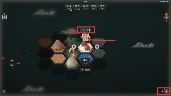 2、建造【房屋】时,留意资源增减提示,如消耗木材并增加人口容纳量,合理规划资源,关注右下角时间变化,合理分配时间。