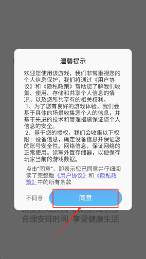 1、接受隐私协议:在游戏启动界面,阅读并点击“同意”按钮以接受用户协议和隐私政策,开始游戏。