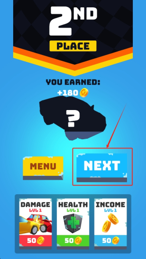 3、结束并继续:游戏结束后,点击“NEXT”按钮继续游戏,或点击“MENU”返回主菜单。