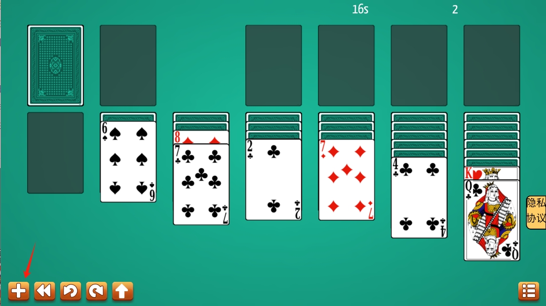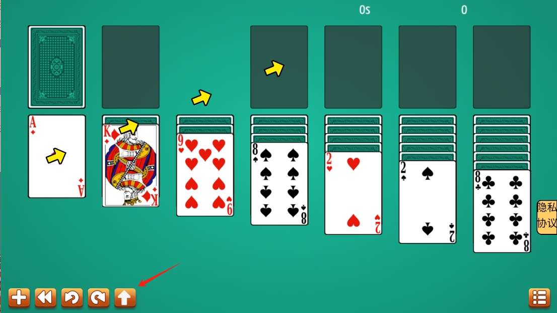 2、使用底部的控制按钮移动牌,将同花色的牌按顺序排列,完成牌局目标。