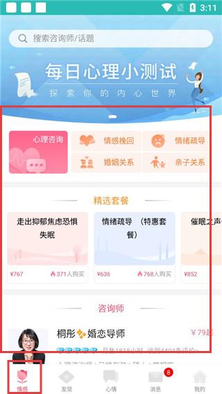 1、打开应用,在【情感】页面选择要下单的咨询师。