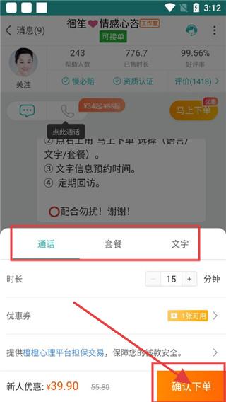 3、进入下单界面可以选择咨询方式和时间,选择好后点击【确认下单】即可。