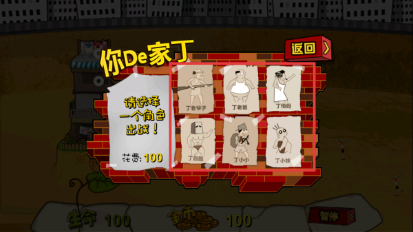 1、在【请选择一个角色出战】界面,根据金币数量(花费100金币)和角色特点选择合适角色出战。