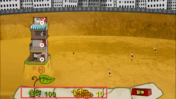 2、关注游戏界面下方的【生命】和【金币】数值,合理规划金币使用,确保生命安全。