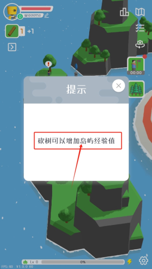 3、执行任务获取经验:根据游戏提示,执行如砍树等任务可以增加岛屿经验值,帮助你解锁更多的游戏内容。