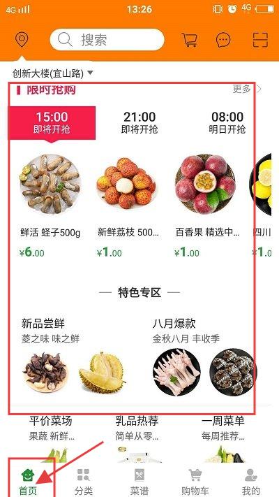 1、打开应用,在首页有【限时抢购】的商品可以进行购买。