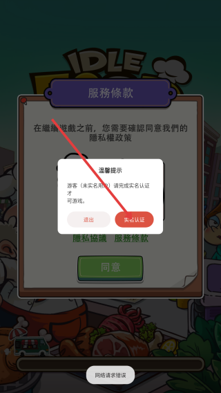 1、进入游戏,点击【实名认证】。
