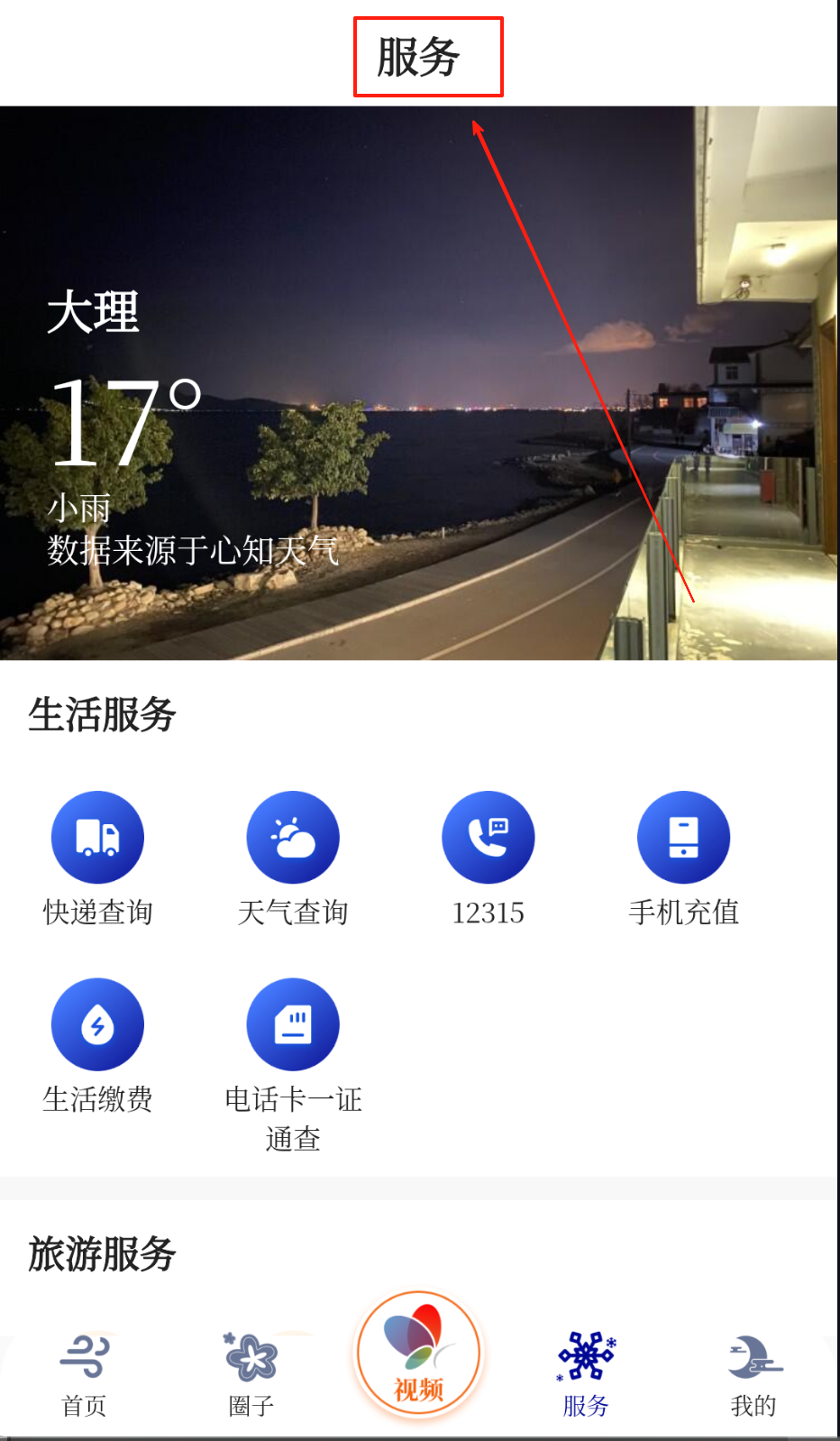 3、点击服务专区体验在线政务办理,使用生活缴费功能需提前绑定银行卡,视频直播入口位于首页推荐栏。