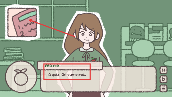 2、留意游戏中出现的书本等道具(如图中箭头指向的书本),可能隐藏着与剧情或问答相关的线索,可点击探索获取更多信息。