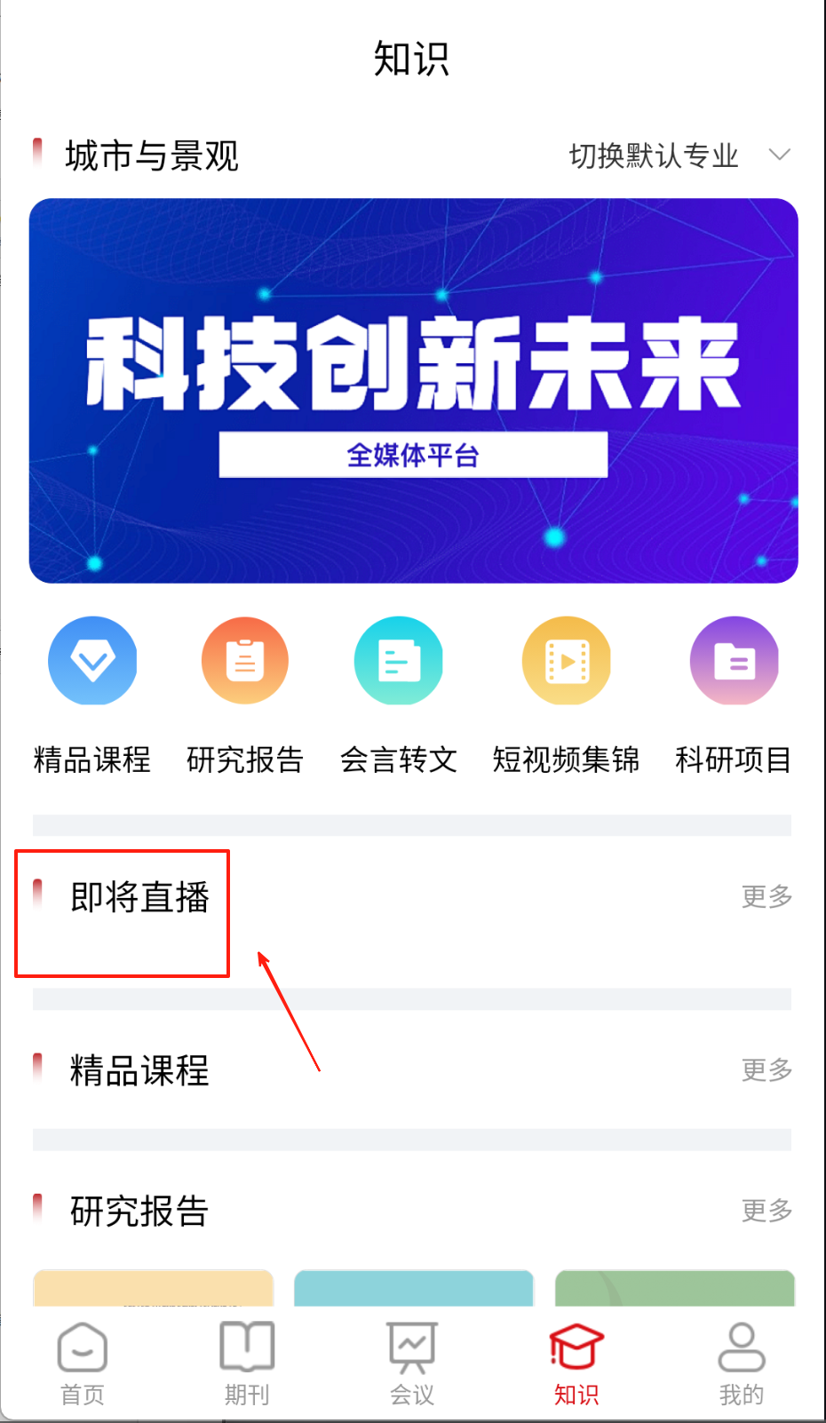 1、启动应用首页自动推送热门期刊与会议动态,点击专业标签可筛选建筑规划等细分领域内容。