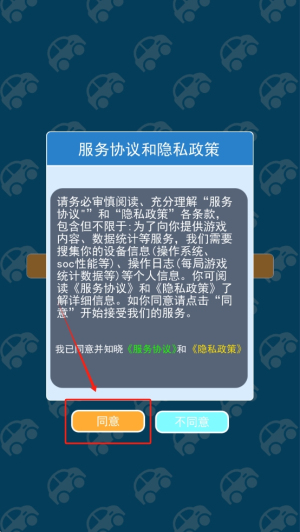 1、接受服务协议:在游戏启动时,仔细阅读并同意“服务协议”和“隐私政策”后,点击“同意”按钮以继续。