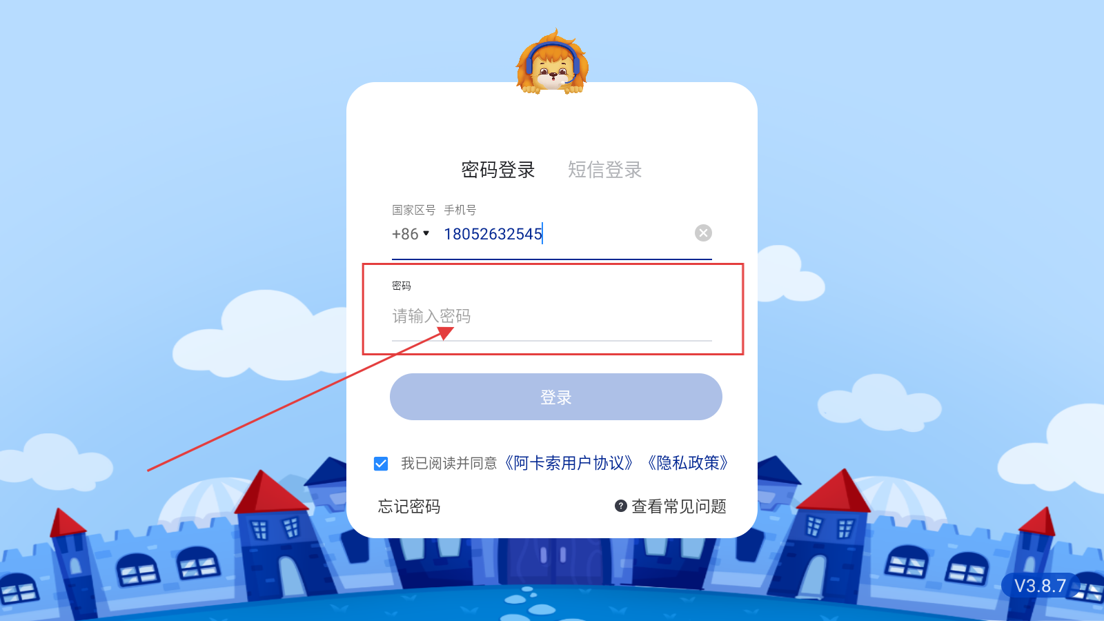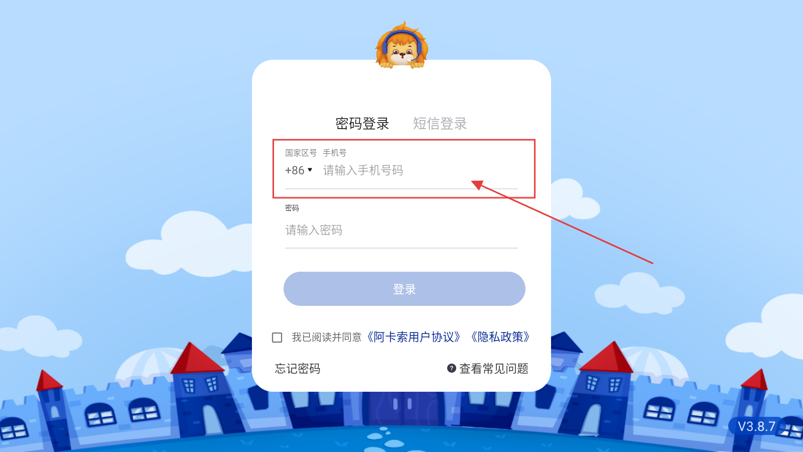 1、打开应用,填写手机号。
