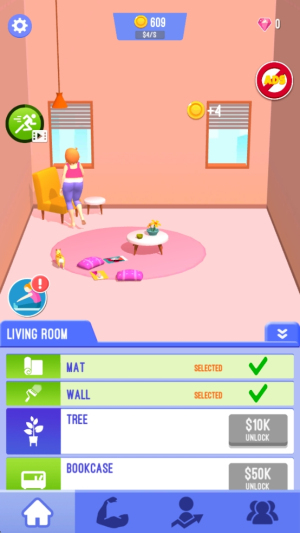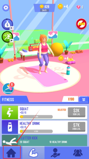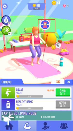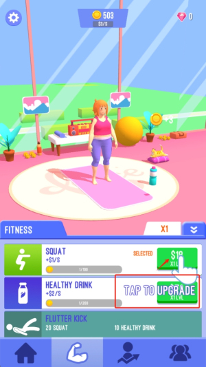 2、升级动作:当有足够的金币时,点击“TAP TO UPGRADE”按钮来升级你的锻炼动作,提高效率。