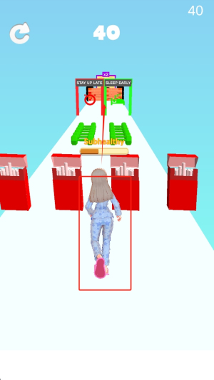 2、避开障碍物,如垃圾桶和禁止标志,确保角色安全地通过这些障碍。