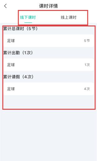 2、找到【课时详情】板块,可切换【线下课时】【线上课时】查看。