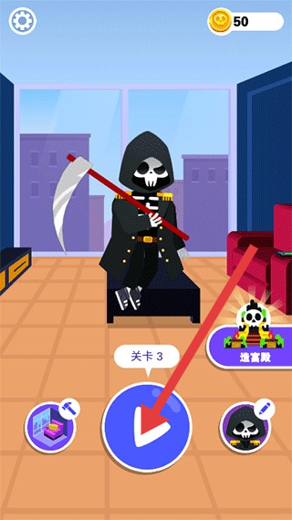 1、点击关卡3界面中的蓝色向下箭头按钮进入游戏关卡。