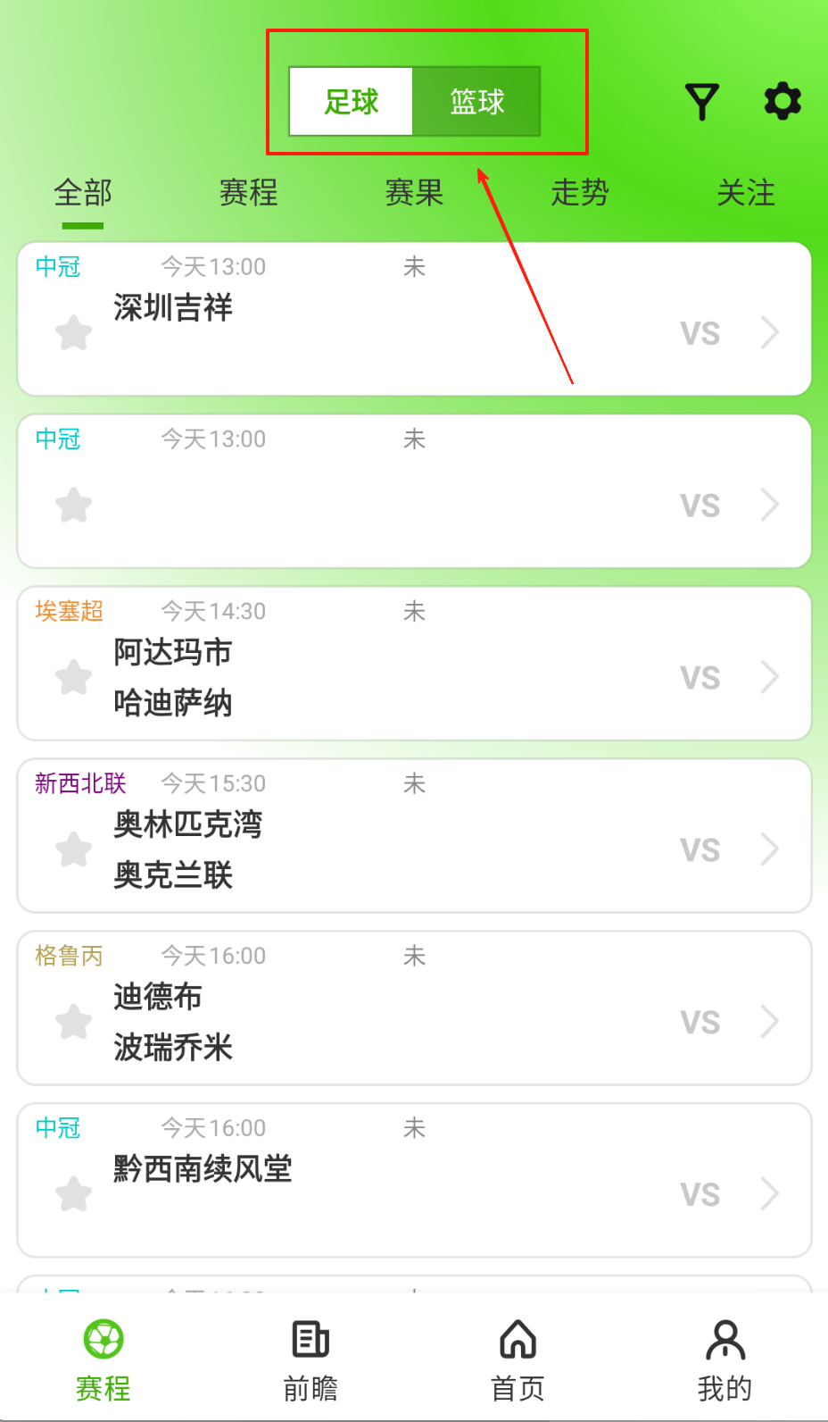 1、启动程序后进入偏好设置勾选足球或篮球项目,系统将根据选择持续推送英超、欧冠等联赛的即时赛况与未来三天的赛事日历。