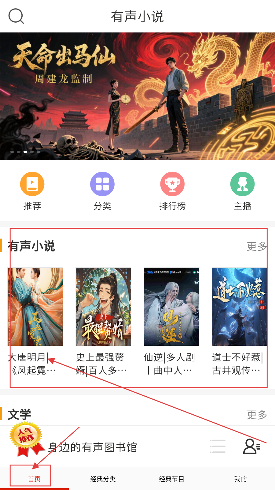 1、打开应用,在首页选择喜欢的小说点击。