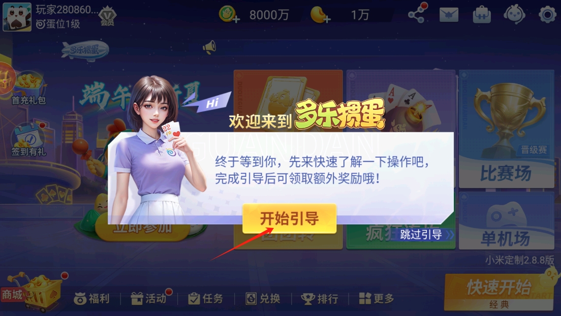 2、点击“开始引导”按钮,通过引导了解游戏基本操作。完成引导后能够领取额外奖励,熟悉游戏规则和玩法。