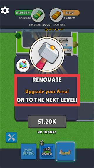 2、当出现【RENOVATE】提示时,可花费【$1.20K】对区域进行升级,推进游戏至下一关卡。