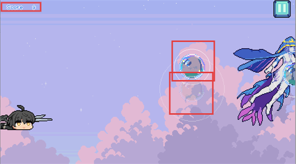 2、当图中带有黄色光环的目标,触碰到可以加快角色飞行速度。