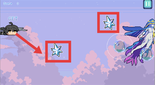 3、飞行过程中,留意场景中的星星道具,按箭头提示收集,如【GET】标识所示,收集星星或可增加分数、解锁新内容。