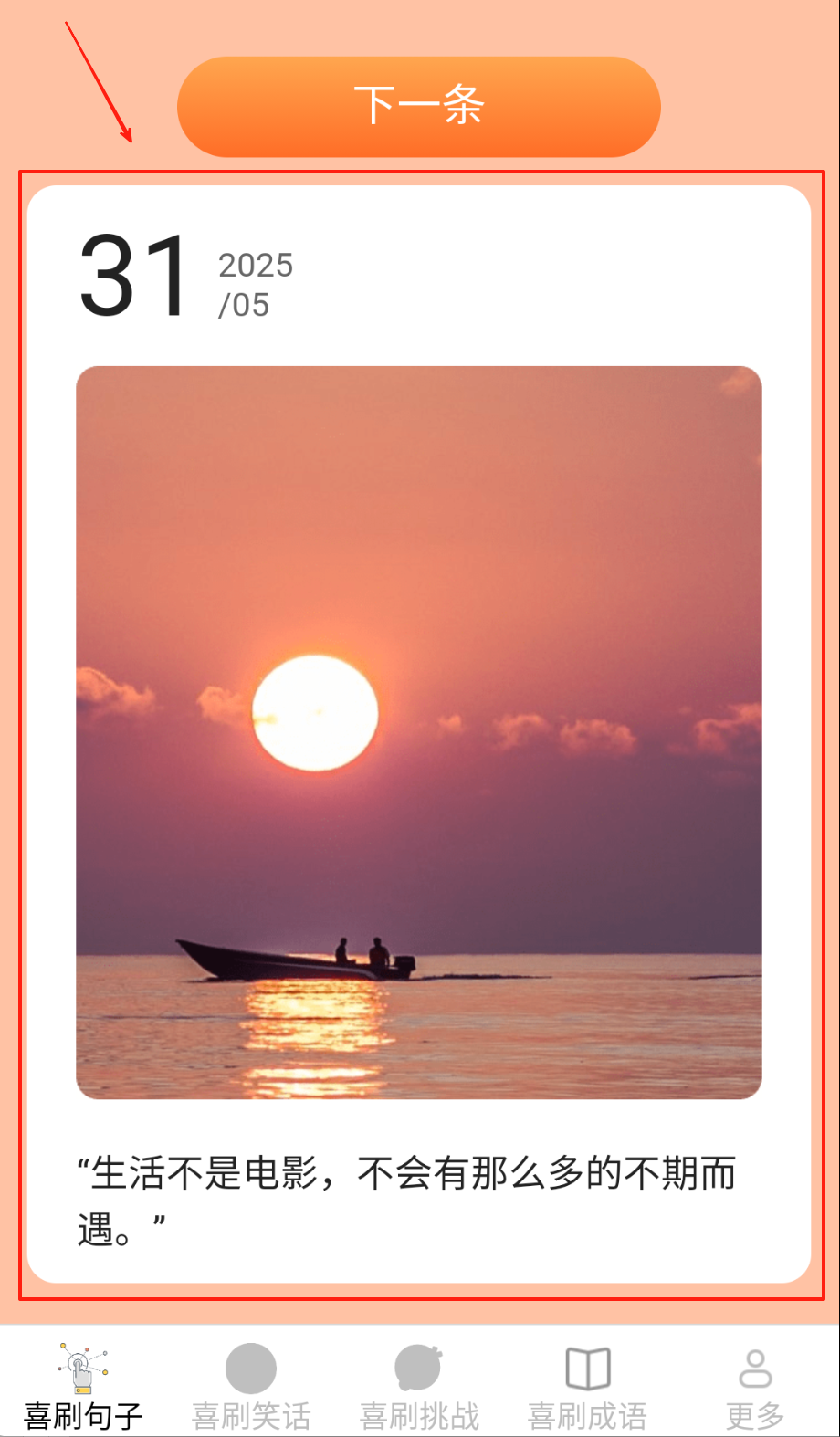 2、喜刷句子查看喜欢语句,体验语言带来的激励效果,丰富日常生活情感。