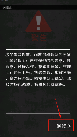 1、阅读警告并继续:在游戏开始前,仔细阅读游戏警告信息,了解可能引起的不适,并点击“继续”按钮以开始游戏。