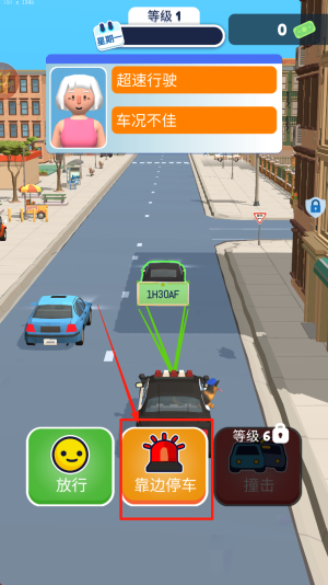 3、执行任务:在游戏中,根据提示选择正确的操作,例如点击“靠边停车”按钮来指挥违规车辆停车。