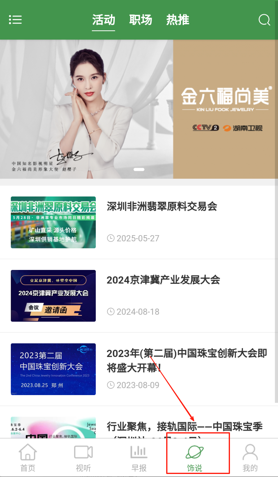 2、进入视听板块可观看珠宝新品发布会直播、行业峰会精选回放,并通过垂直领域短视频获取供应链动态与消费市场前沿分析。