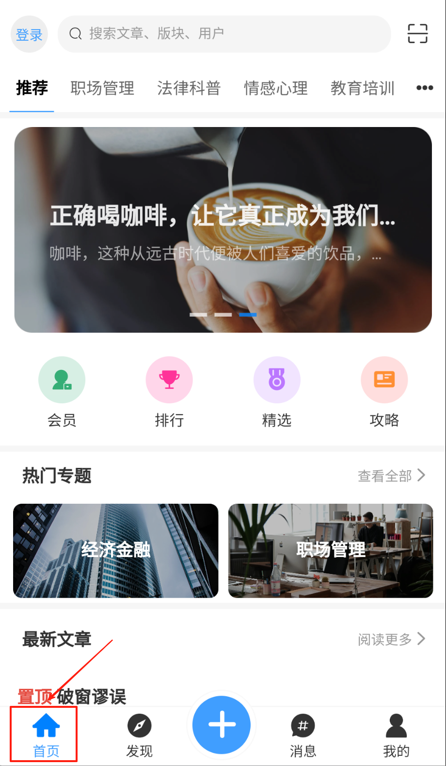 1、注册登录后浏览首页推荐的热门专题与优质文章,快速获取前沿知识。