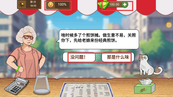 1、当顾客提出要一份【经典煎饼】时,选择【没问题】选项来回应顾客。
