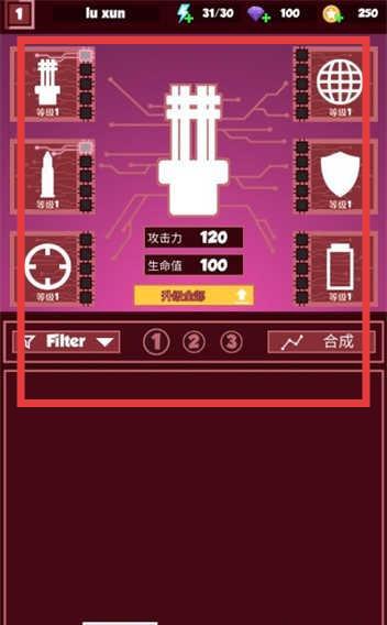 1、关注界面中的各类基础建筑属性,如【攻击力120】和【生命值100】,可通过资源对建筑进行等级提升,增强整体实力。