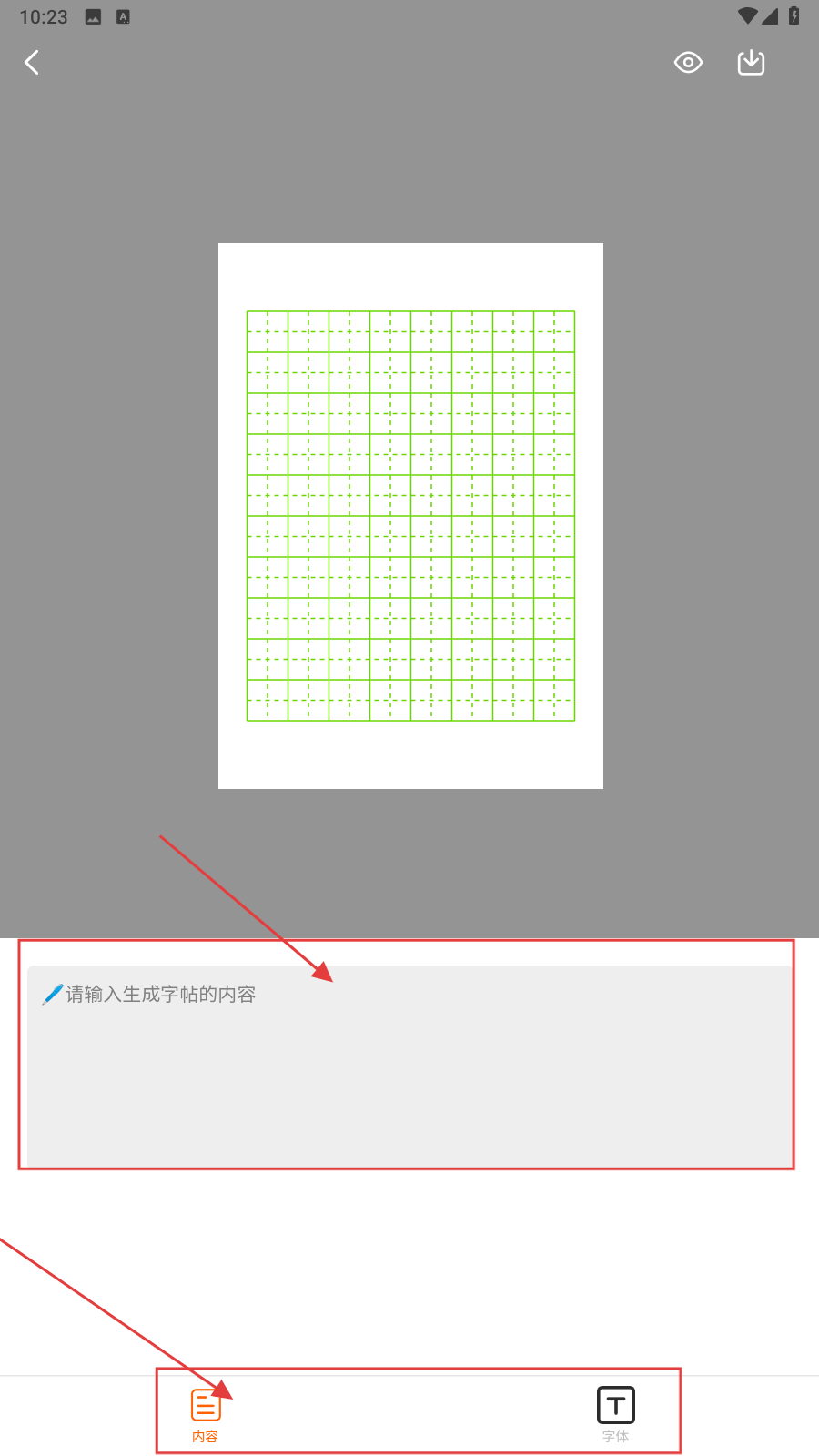 3、输入完成后,可按需调整字体等设置,生成个性化字帖,查看文字在字帖格子中的排版展示效果。