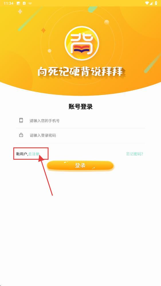 1、打开应用,若显示【账号登录】界面,点击【新用户,去注册】,进入注册流程。