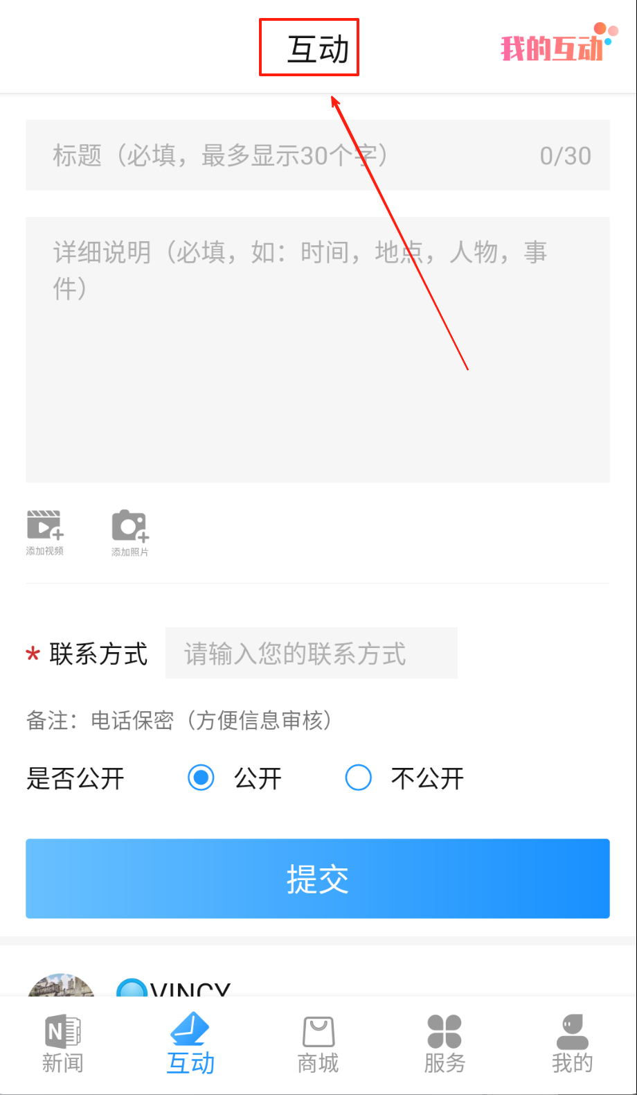 2、通过顶部智能搜索框输入关键词精准定位目标资讯,或使用底部投稿功能上传身边事件,经审核后向全网传播。