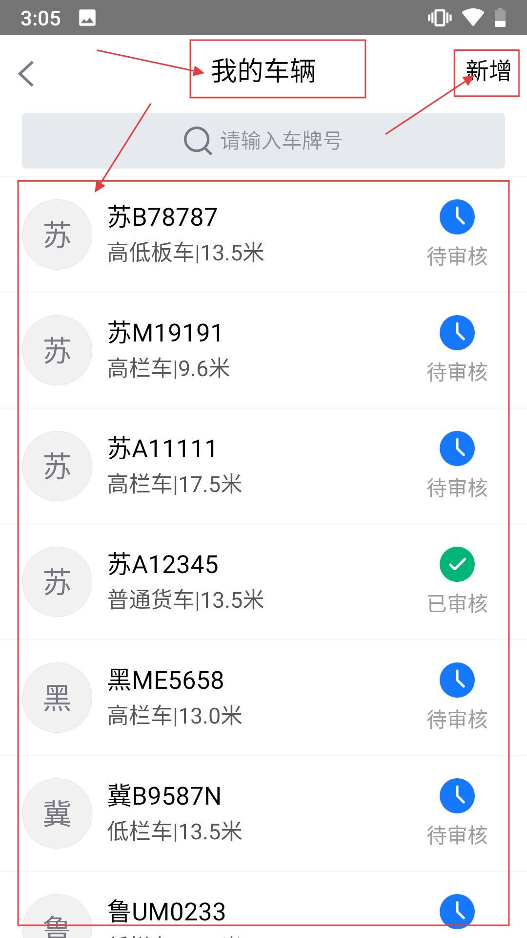 3、在个人中心页面,点击【我的车辆】,进入车辆管理界面。可查看已添加车辆信息,如车牌号、车型及审核状态。