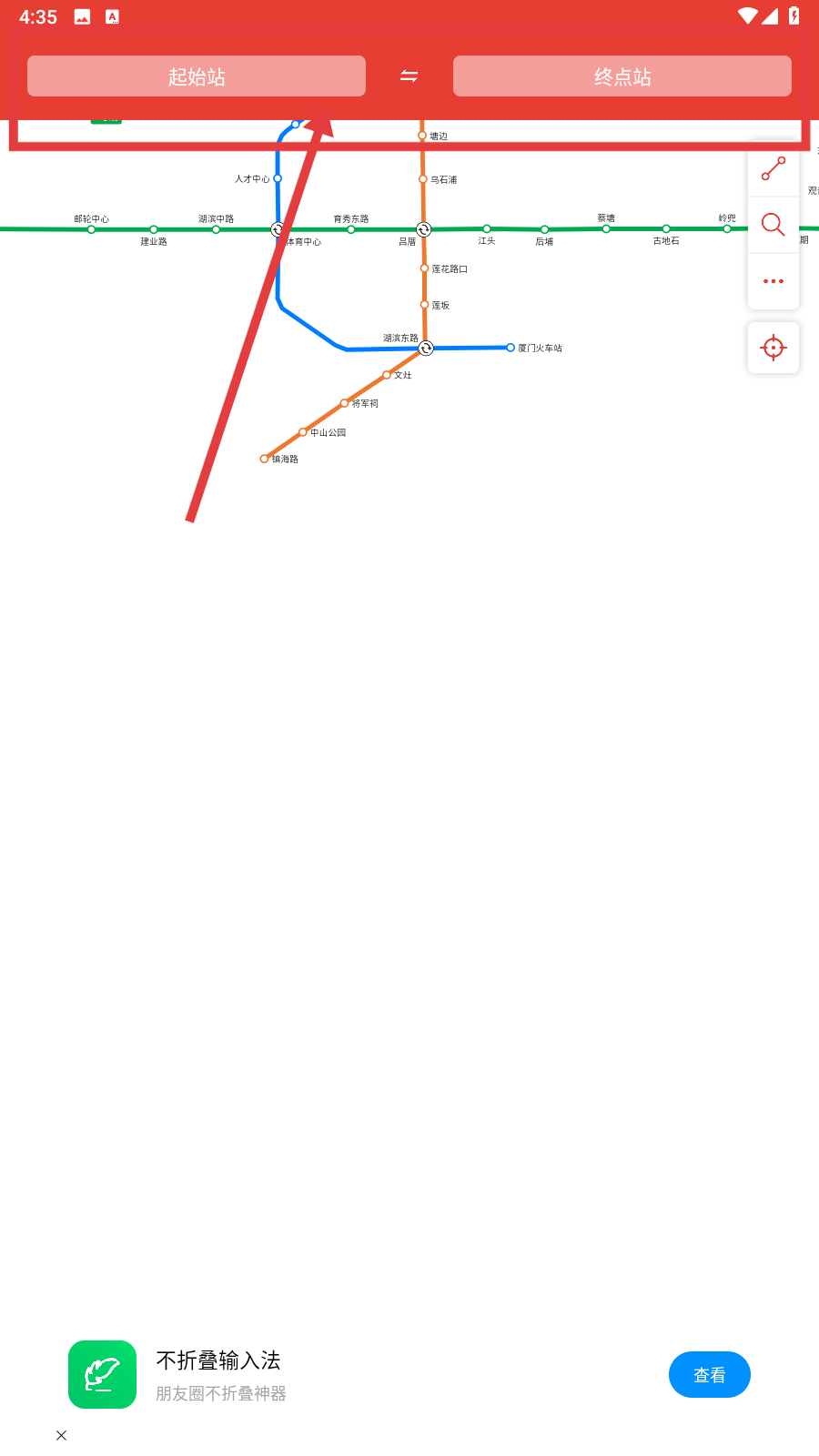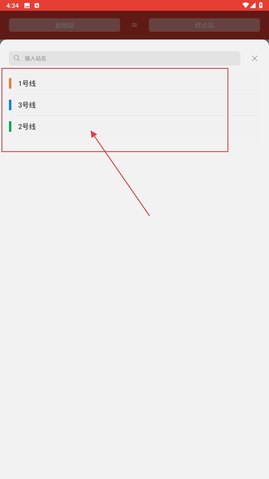 1、打开应用,在首页找到【起始站】和【终点站】输入框。