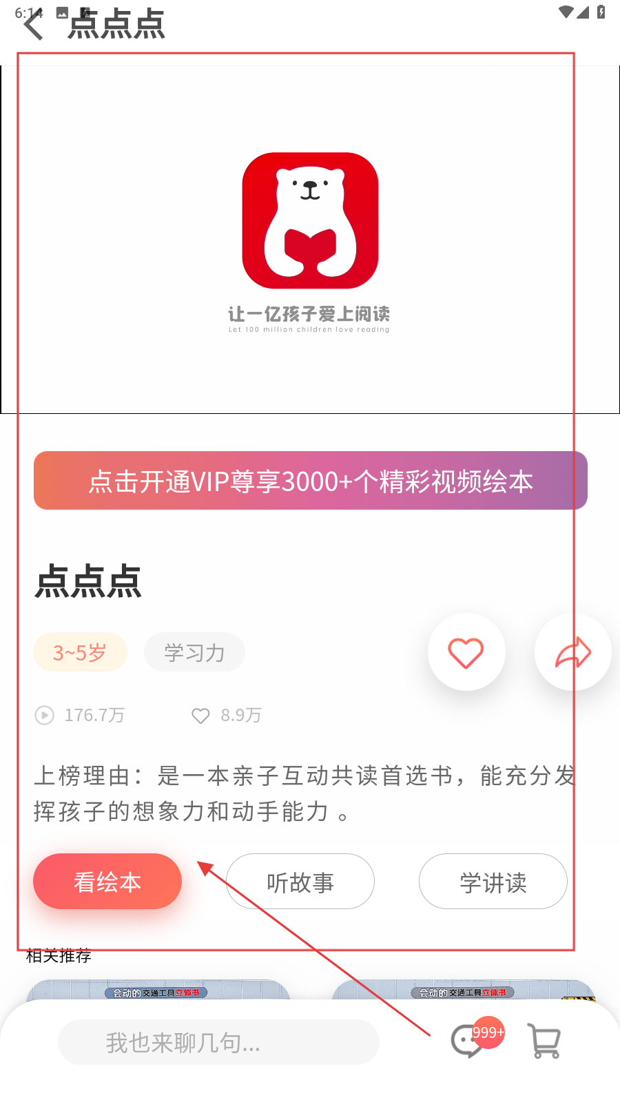 2、进入《点点点》绘本详情页,点击【看绘本】按钮。