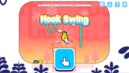 1、开始游戏:在游戏主界面,点击大拇指图标或“Hook Swing”标题开始游戏。