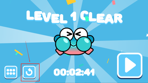 3、完成关卡:成功完成关卡后,会显示“LEVEL 1 CLEAR”,此时可以点击播放按钮观看回放或点击重启按钮重新开始关卡。