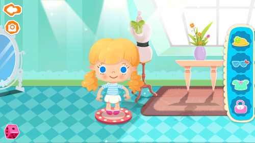 3、互动与换装:与小镇居民互动,根据任务需求为糖糖换装,然后继续进行游戏。